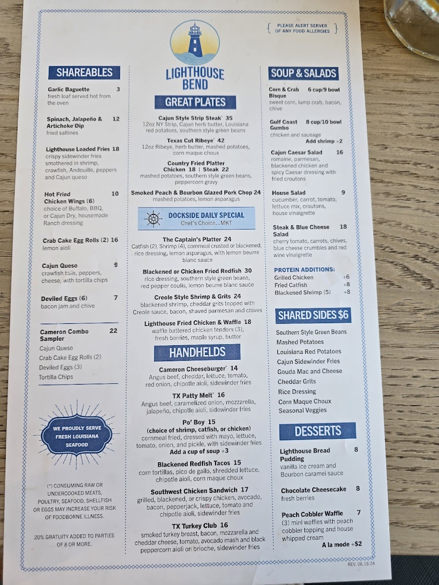 Don’t miss out on the desserts, particularly the Lighthouse Bread Pudding drenched in bourbon caramel sauce—a perfect way to end your meal. The combination of delightful food, welcoming atmosphere, and exceptional service makes Lighthouse Bend a must-visit for food lovers in Cameron.
